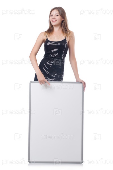 Молодая женщина с пустым плакатом