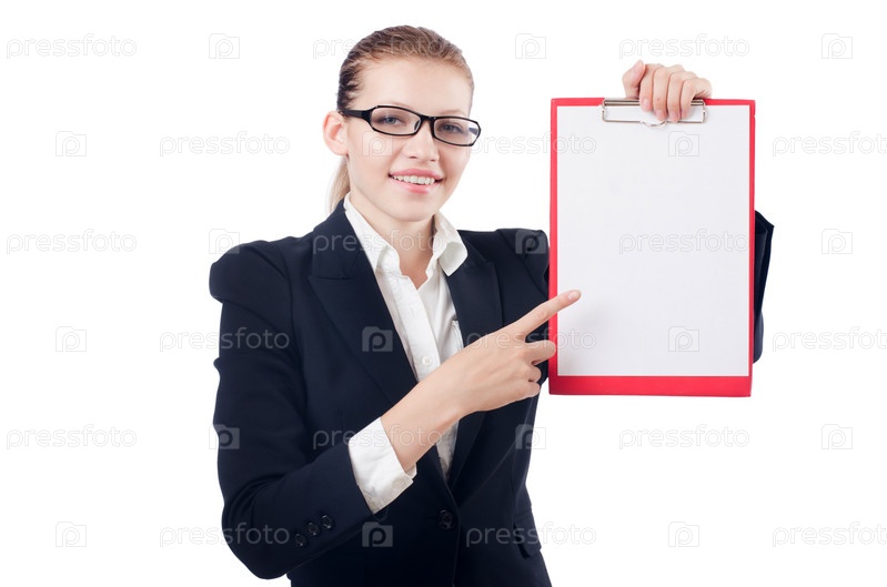 Женщина с планшетом, изолированная на белом фоне