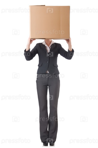 Деловая женщина с коробками на белом фоне