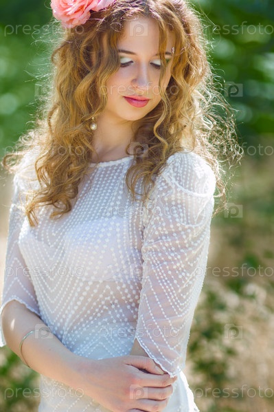 Красивая молодая женщина с вьющимися волосами