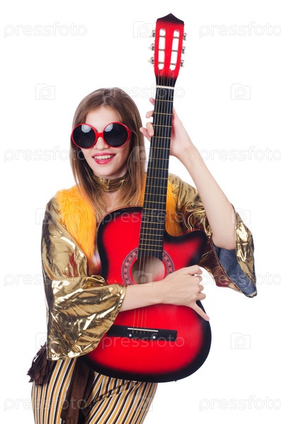 Гитарист, изолированный на белом фоне