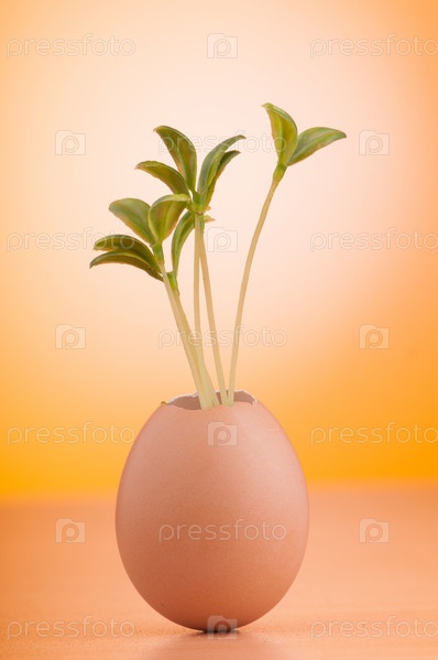 Яйцо с зеленой рассадой в концепции новой жизни