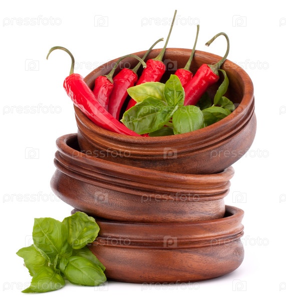 Острый красный перец на стопке деревянных тарелок