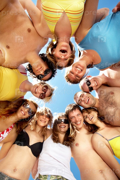 Друзья, отдыхающие на солнечном пляже