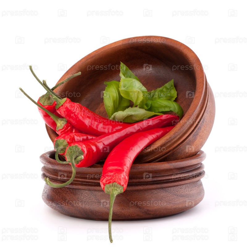 Острый перец на стопке деревянных мисок