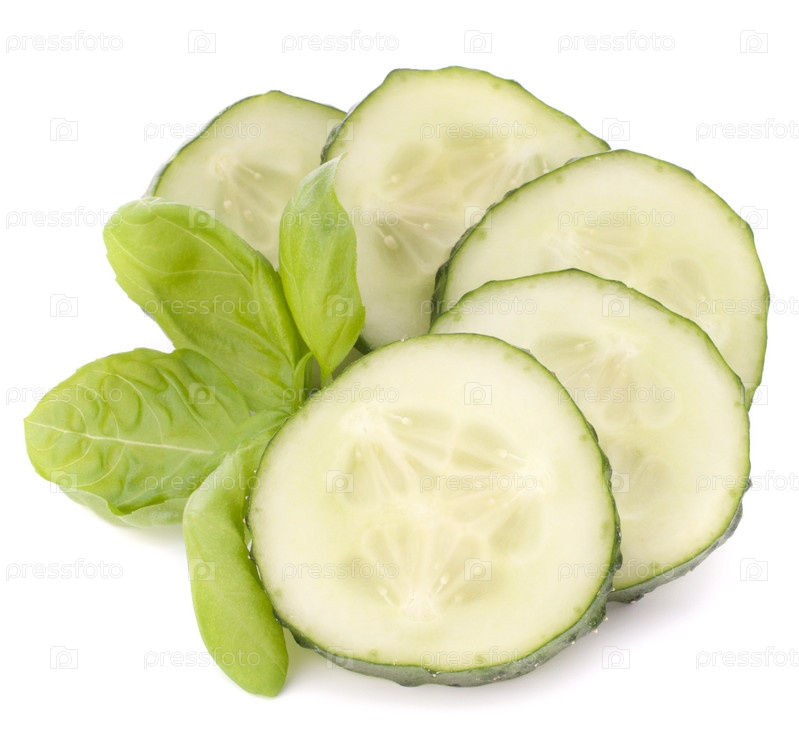Ломтики огурца и базилик