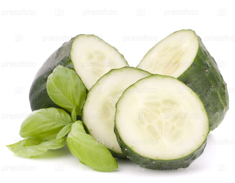 Ломтики огурца и базилик