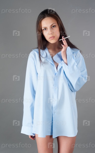Красивая молодая брюнетка молодая с сигаретой