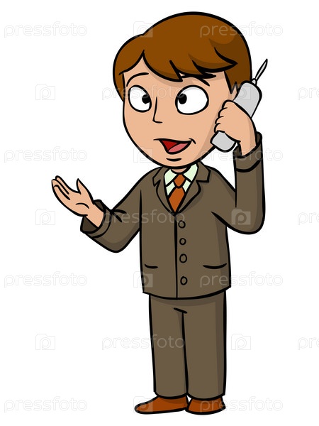 Мультипликационный бизнесмен, разговаривающий по сотовому телефону