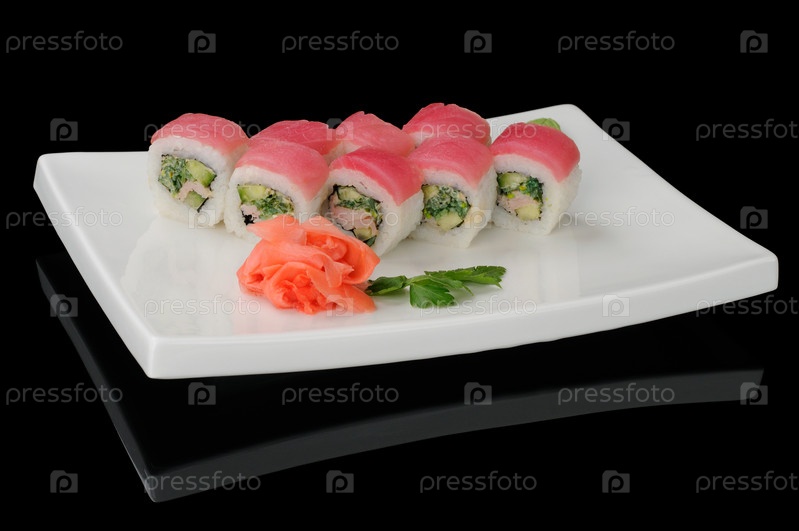 Восемь руллов с тунцом
