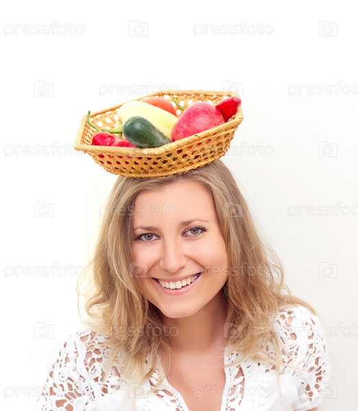 Женщина с фруктами и овощами