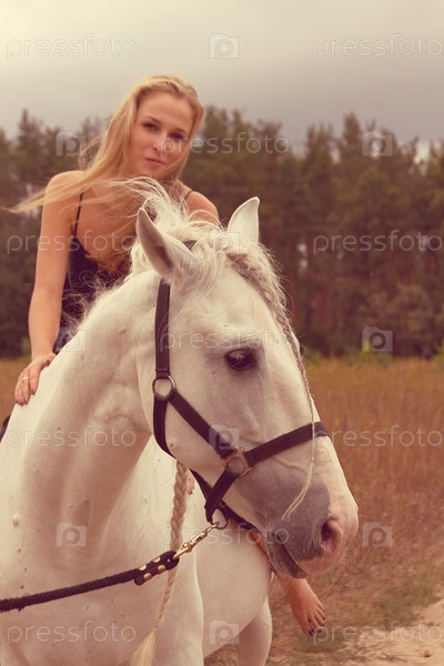 Красивая молодая женщина с лошадью