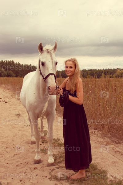 Красивая молодая женщина с лошадью