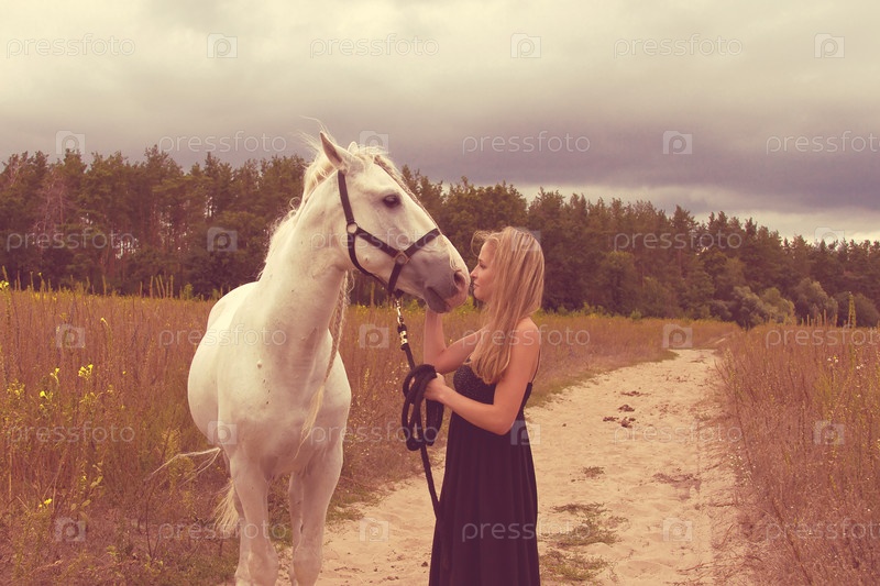 Красивая молодая женщина с лошадью
