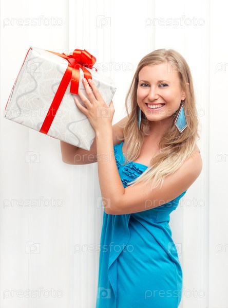 Женщина в платье с подарком