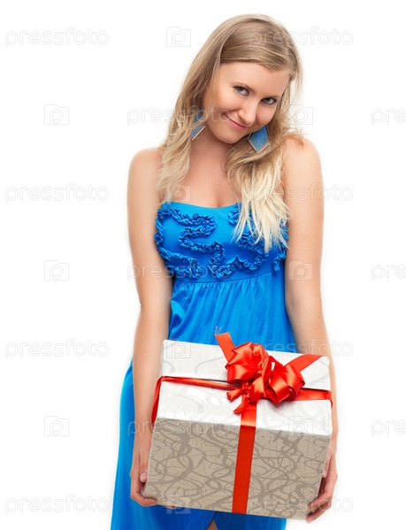 Женщина в платье с подарком