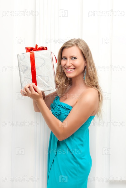Женщина в платье с подарком