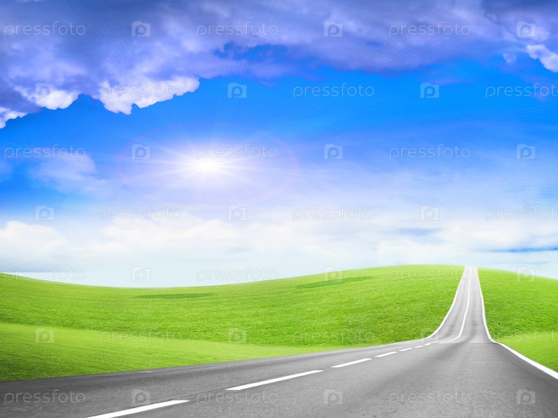 Летний пейзаж с асфальтированной дорогой