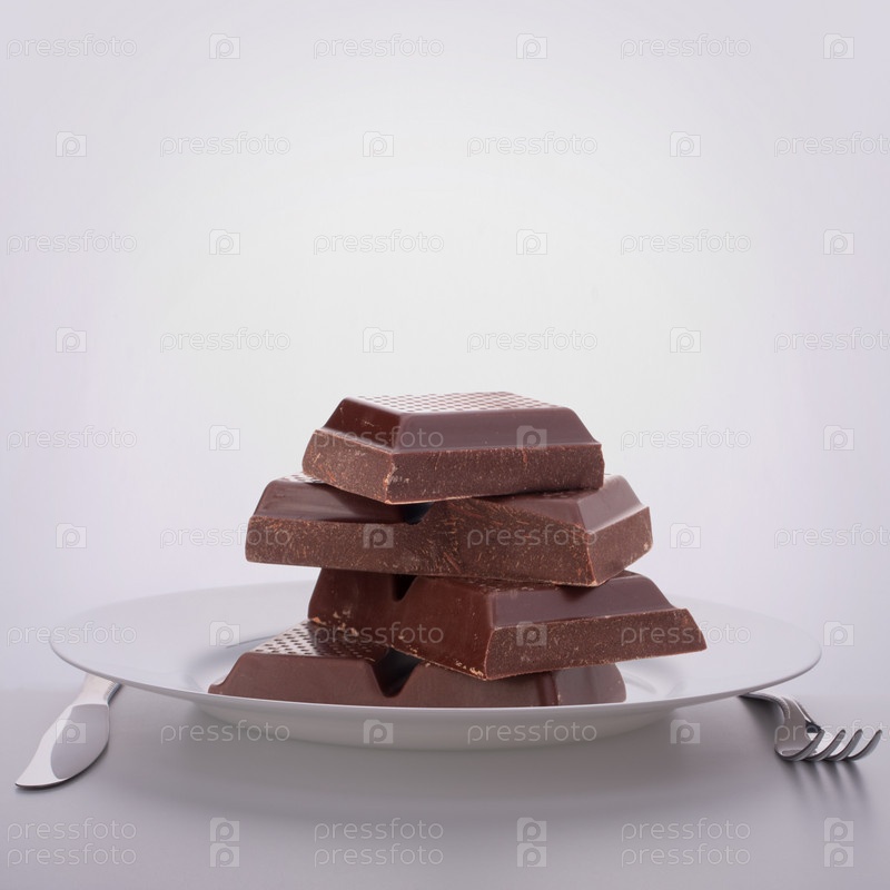 Шоколадные плитки на тарелке