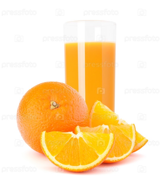 Стакан сока и апельсин