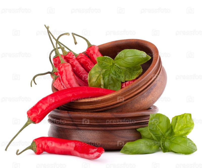 Острый красный перец на стопке деревянных мисок