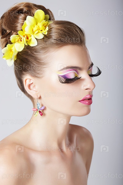 Гламур. Профиль модной женщины с удивительным фантастическим макияжем