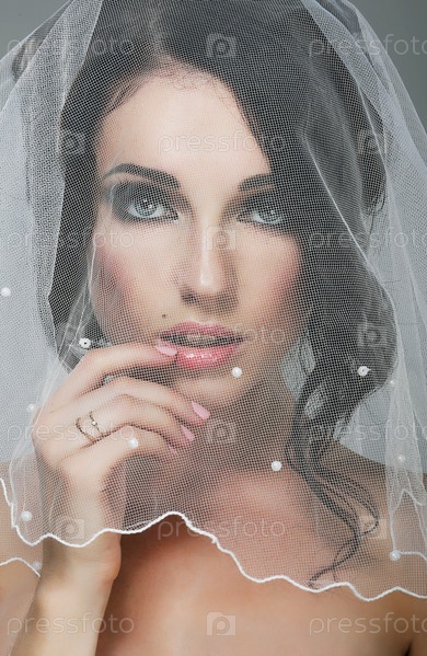 Свадьба. Портрет темноволосой невесты в фате