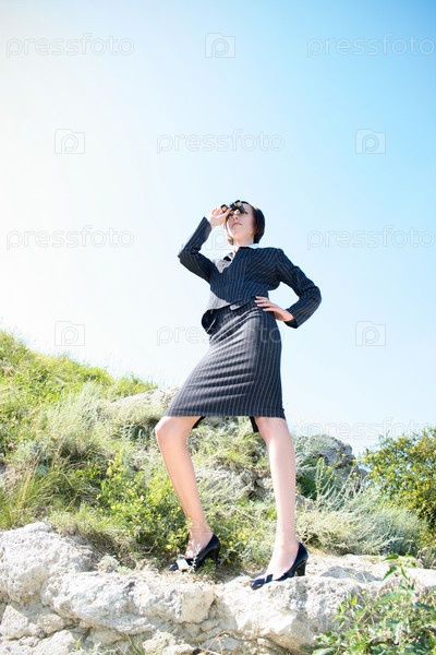Бизнес-леди, смотрящая в бинокль вдаль