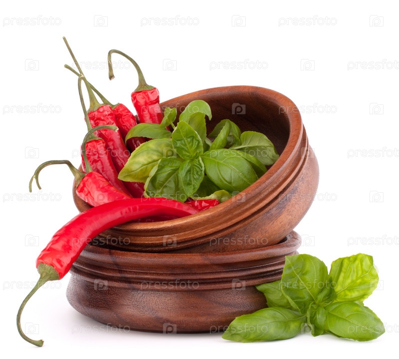 Острый красный перец на стопке деревянных мисок