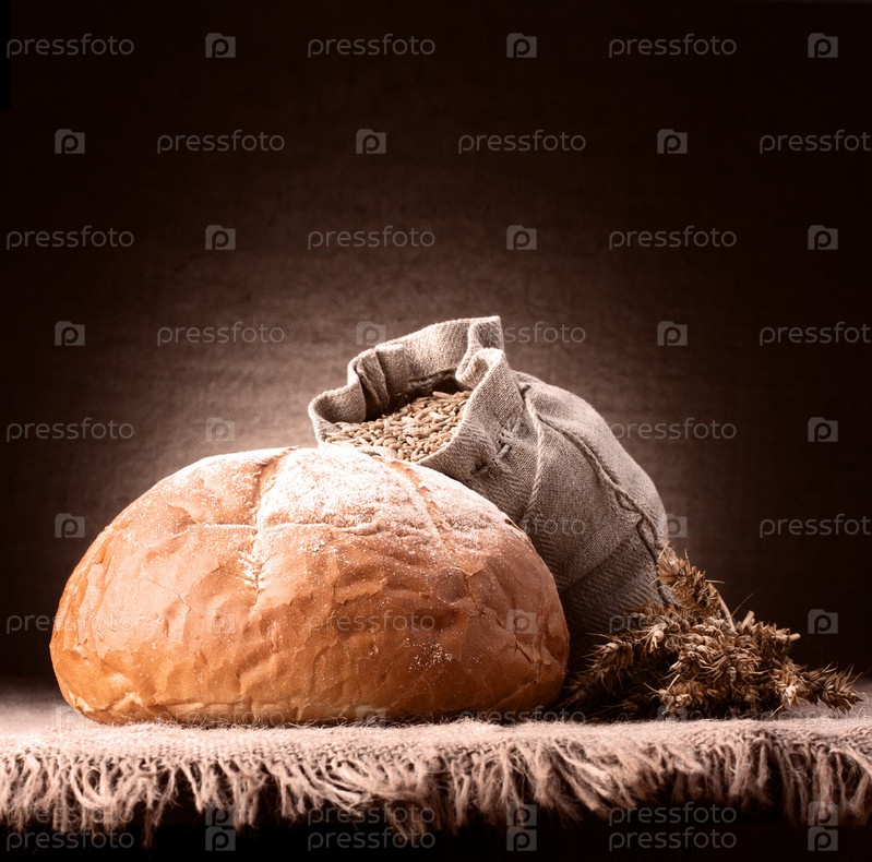 Хлеб, мешок муки и колосья