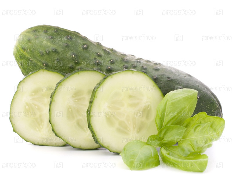 Ломтики огурца и базилик