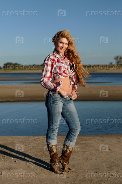 Молодая красивая девушка на берегу реки