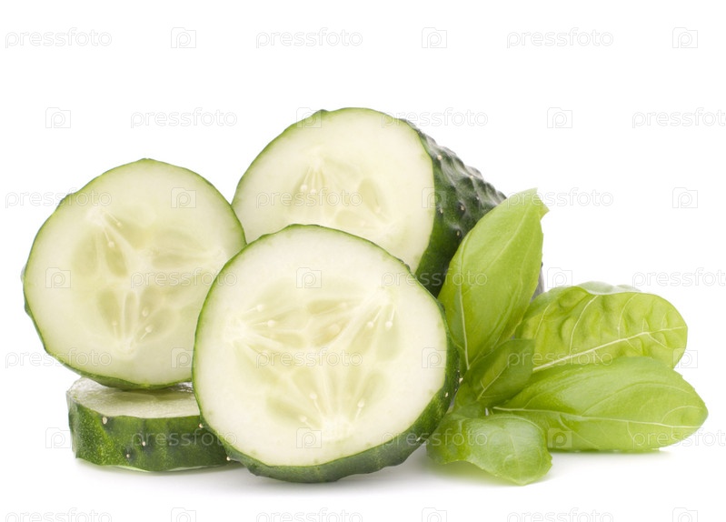 Ломтики огурца и базилик