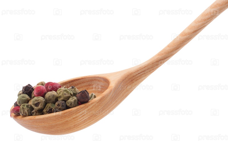 Смесь приправ в деревянной ложке, изолированные на белом фоне