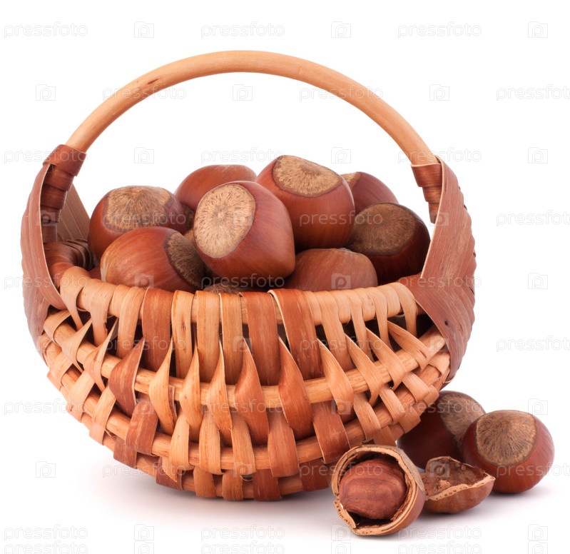 Лесной орех в плетеной корзине