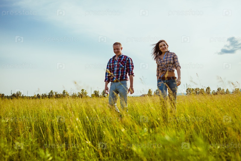 Пара идет через поле