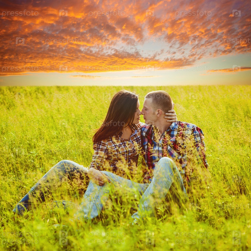 Пара сидит на траве