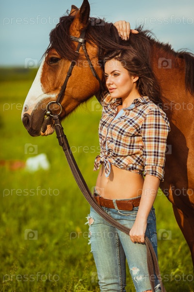 Красивая женщина стоит возле лошади