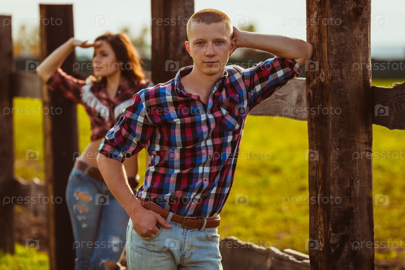 Пара на ферме возле забора