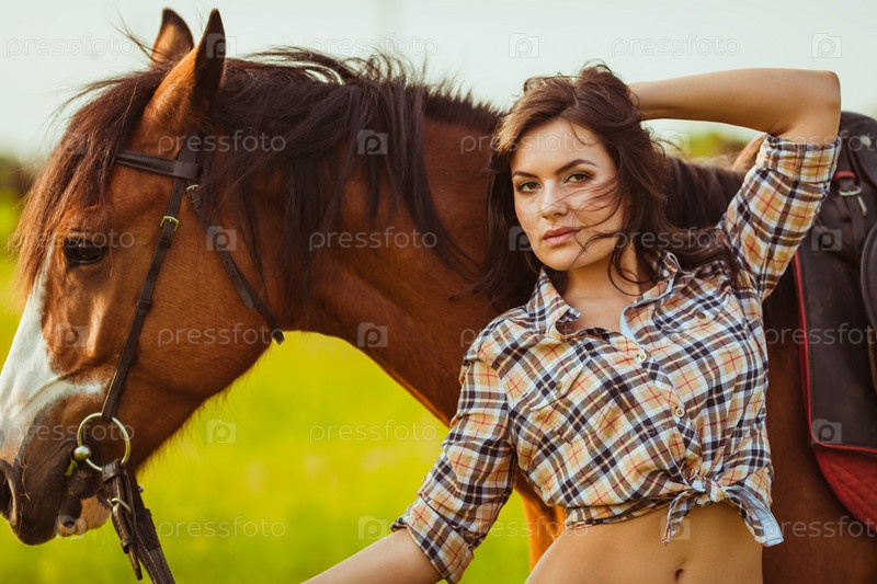 Красивая женщина стоит возле лошади