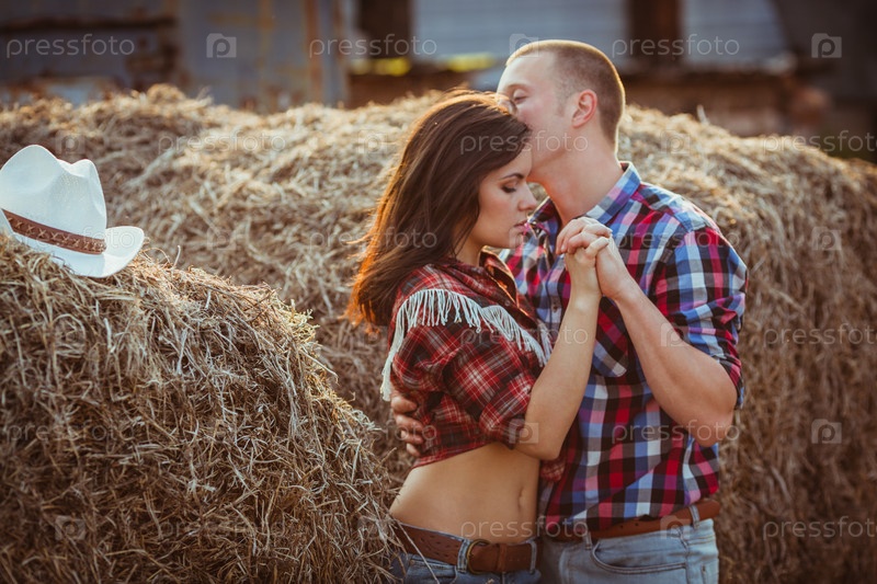 Пара обнимается возле сена