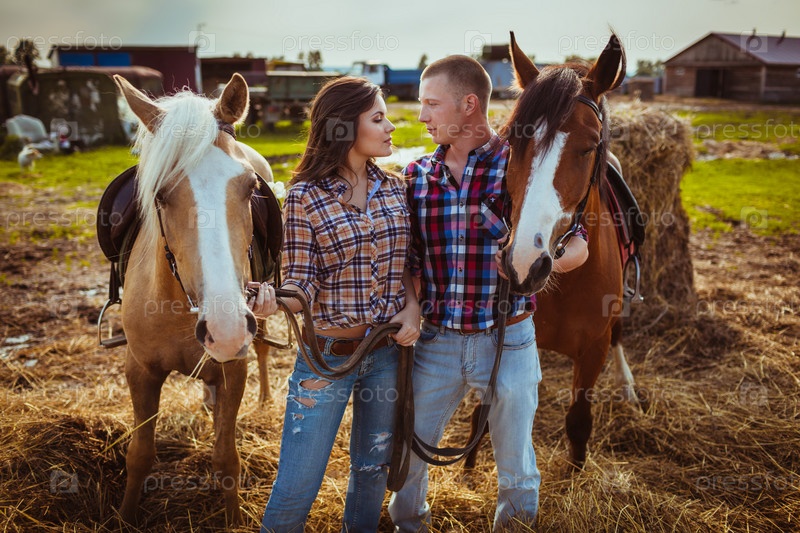 Пара на ферме с лошадьми