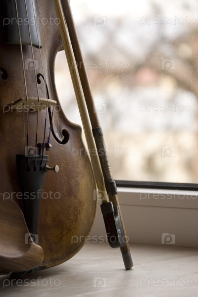 Скрипка со смычком крупным планом
