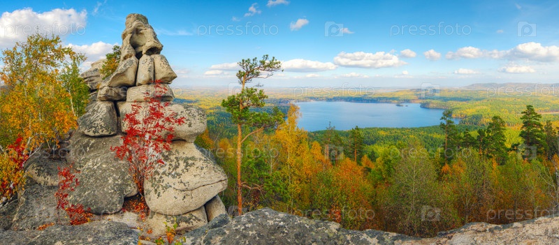 Осенний пейзаж с горами и озером