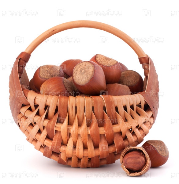 Лесной орех в плетеной корзине