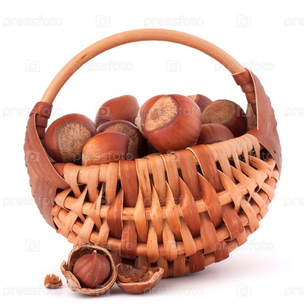 Лесной орех в плетеной корзине