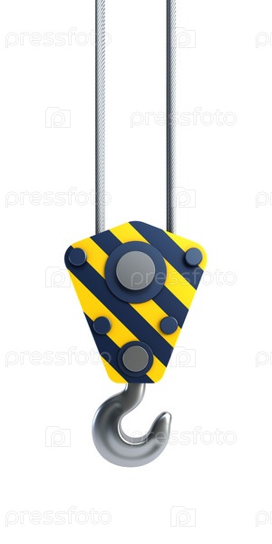 Крановый крюк со знаками опасности на белом фоне