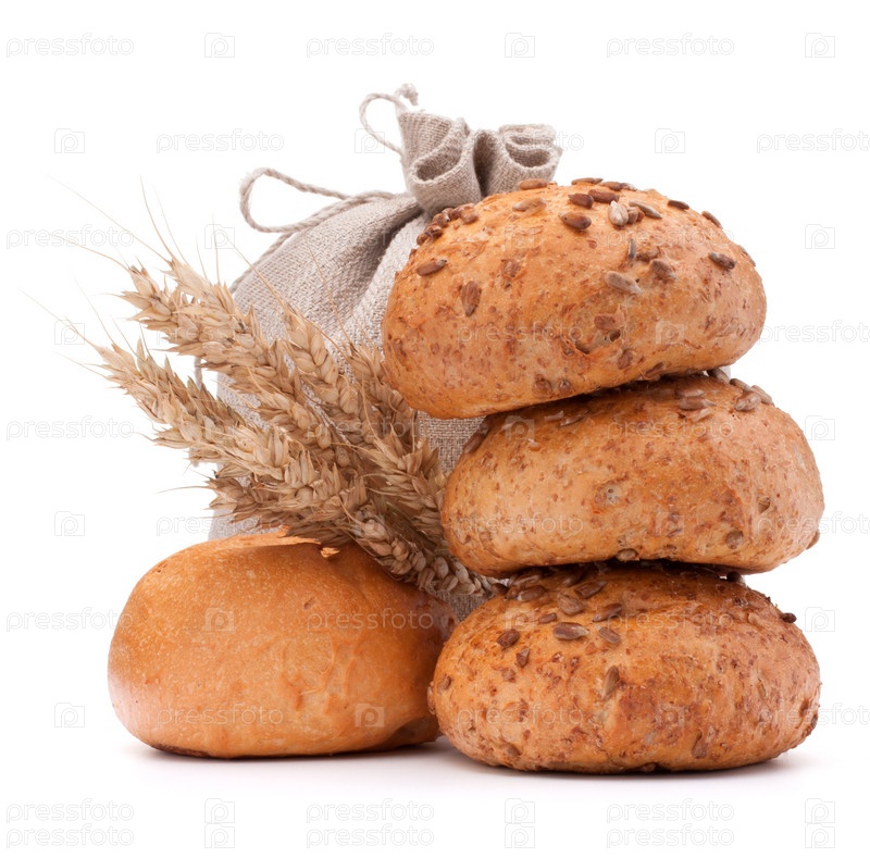Мешок, булочки и колосья пшеницы