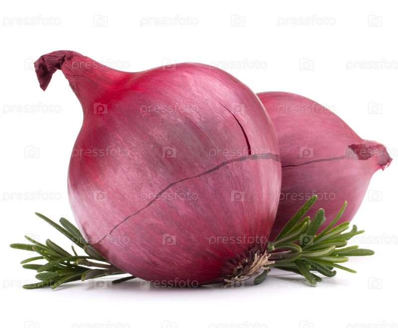 Красный лук и листья розмарина