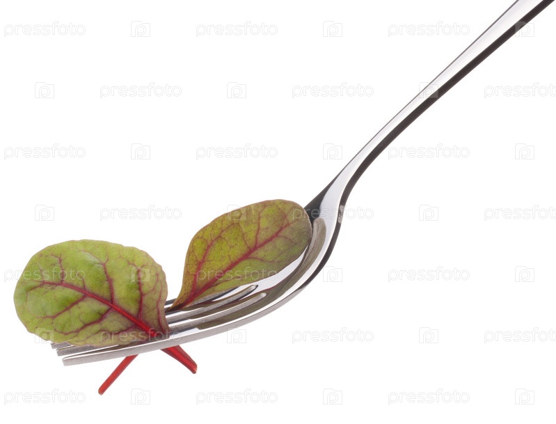 Мангольд на вилке, изолированный на белом фоне